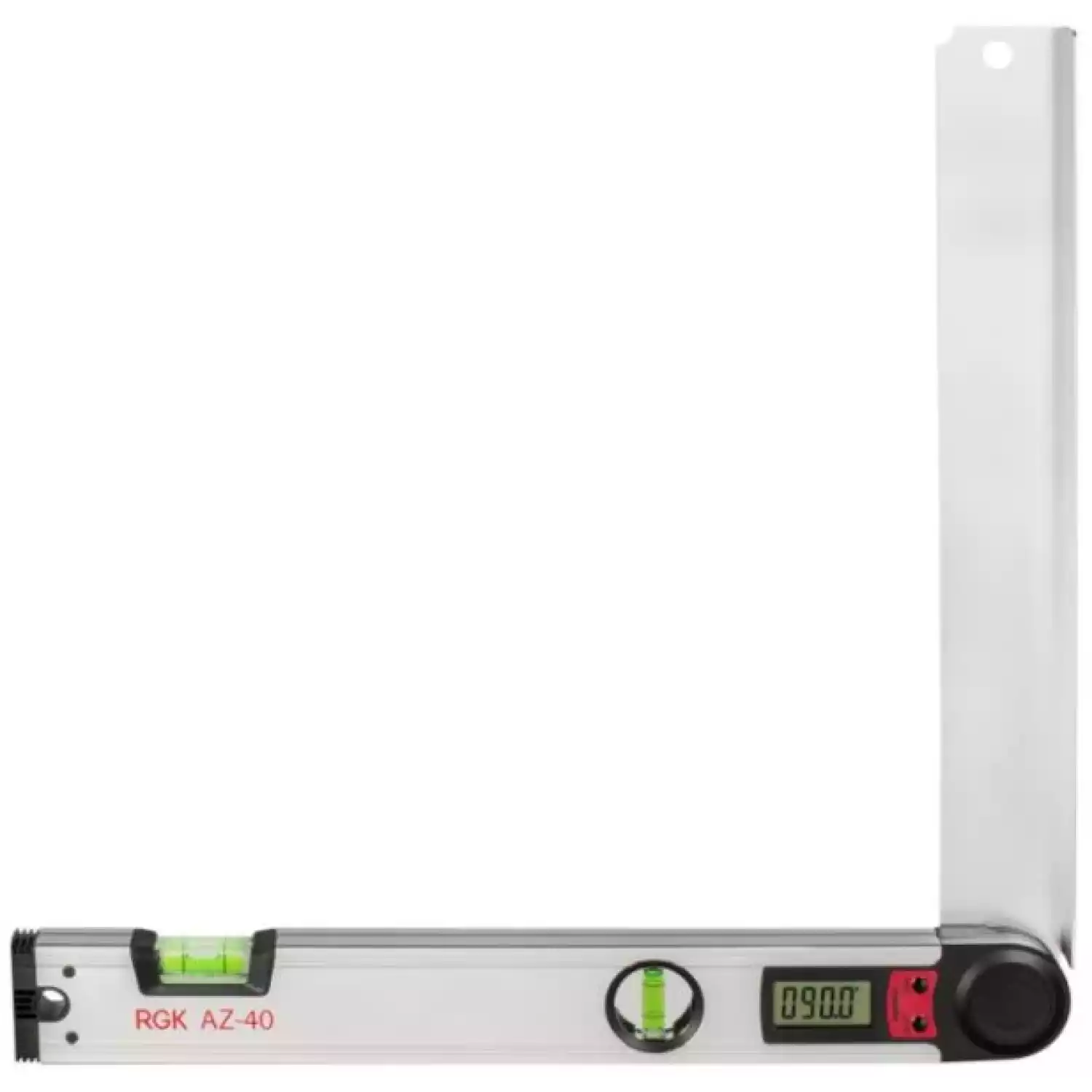 Электронный угломер RGK AZ-40 - измеряет угловые значения в диапазоне от 0° до 225° с отображением результатов на цифровой экран. С помощью угломера вы можете измерить как абсолютные угловые значения, так и относительные.
