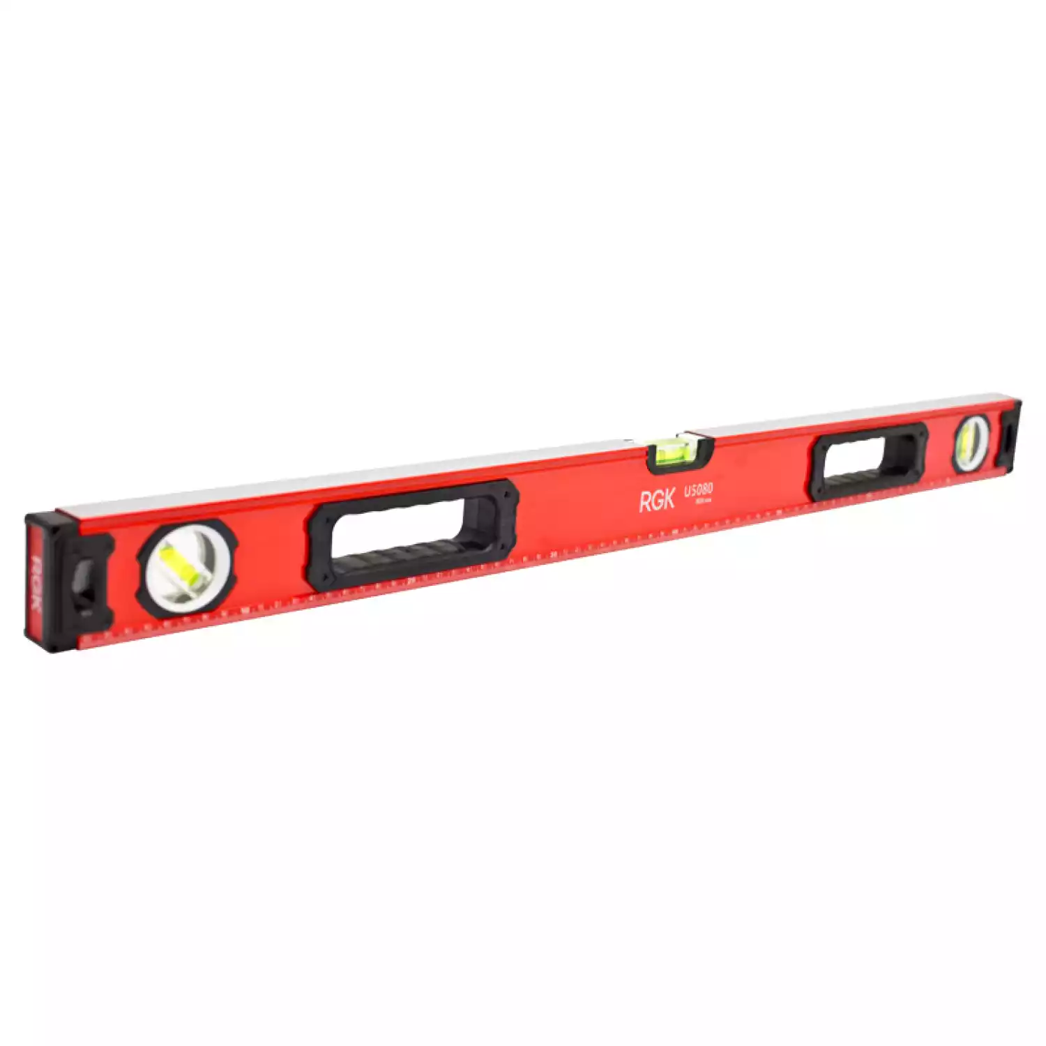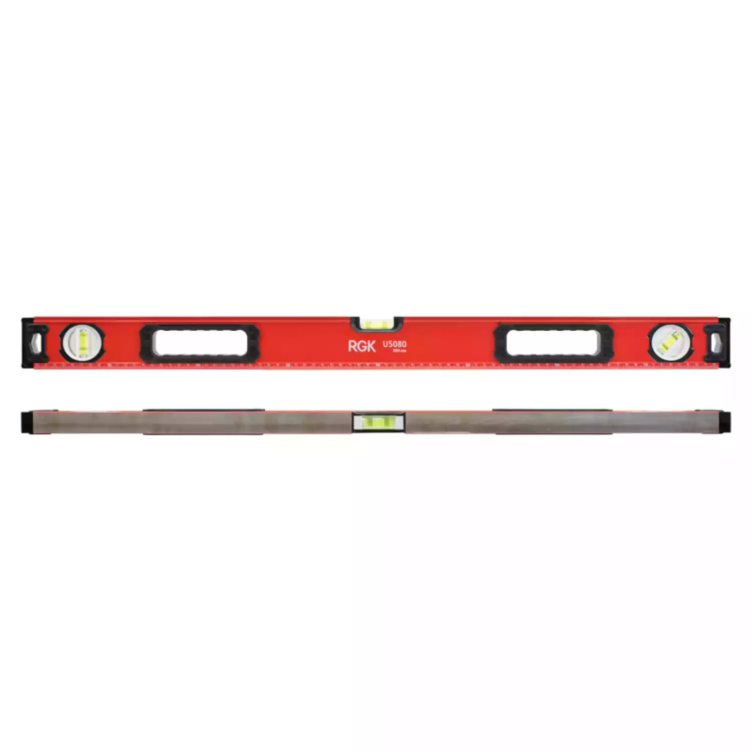 Магнитный уровень RGK U5080 длиной 80 сантиметров оснащен двумя магнитами на противоположных сторонах для крепления уровня на металлической поверхности, чтобы освободить руки при проведении разметки.