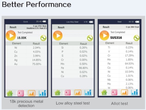 Рентгенофлуоресцентный анализатор разработан таким образом, что способен мгновенно предоставлять результаты исследований. Разработчиками был впервые внедрен большой ЖК-дисплей для анализаторов подобного рода.