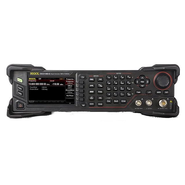 Высокочастотный генератор сигналов Rigol DSG3136B-IQ – многофункциональное лабораторное устройство, характеризующееся точностью, надежностью и стабильностью параметров, которое может использоваться для широкого круга задач, включая тестирование и отладку оборудования беспроводной передачи данных, коммуникационных систем, испытание объектов на ЭМС и т. д. В отличие от базовой модификации, помимо воспроизведения РЧ сигнала выбранной частоты и амплитуды, предусмотрена возможность формирования квадратурной модуляции в диапазоне от 50 МГц до 6,5 ГГц.