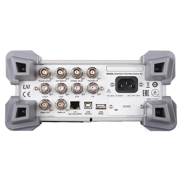 Благодаря наличию цветного графического дисплея высокочастотный генератор сигналов Rigol DSG836 характеризуется улучшенной наглядностью и информативностью. С целью уменьшения площади передней панели большинство коннекторов, кроме LF и RF выходов, вынесены на тыльную часть корпуса, обеспечивая удобство подключения при размещении в приборной стойке. Обмен данными с внешними устройствами может осуществляться через порт и хост USB, либо LAN интерфейс, обеспечивая реализацию режима дистанционного управления с помощью специализированного ПО или команд SCPI.