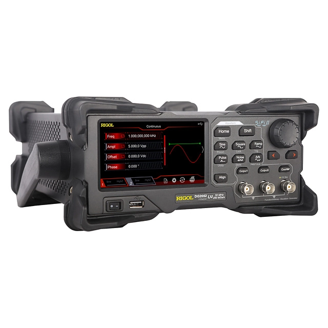 Генератор стандартных функций и сигналов произвольной формы Rigol DG2052 с двумя независимыми каналами с полосой пропускания 50 МГц и встроенным частотомером с рабочим диапазоном до 240 МГц относится ко второму поколению своей линейки и является дальнейшей модернизацией серии DG900.