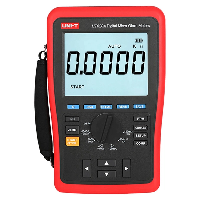 Микроомметр UNI-T UT620A является профессиональным прецизионным измерительным инструментом, который предназначен для оперативного определения величины электрического сопротивления низких и средних номиналов, от 0,5 мОм до 6 кОм, с разрешением в 10 мкОм. Помимо измерения характеристик резисторов в ходе производства и ремонта электронного оборудования, данное изделие также может применяться для проверки кабельной продукции, шунтов, обмоток трансформаторов, электродвигателей и т.п., выявляя наличие межвитковых замыканий, тестирования коммуникационных силовых устройств, определения надежности контактных соединений в линиях заземления и контурах молниезащиты, и т.п.