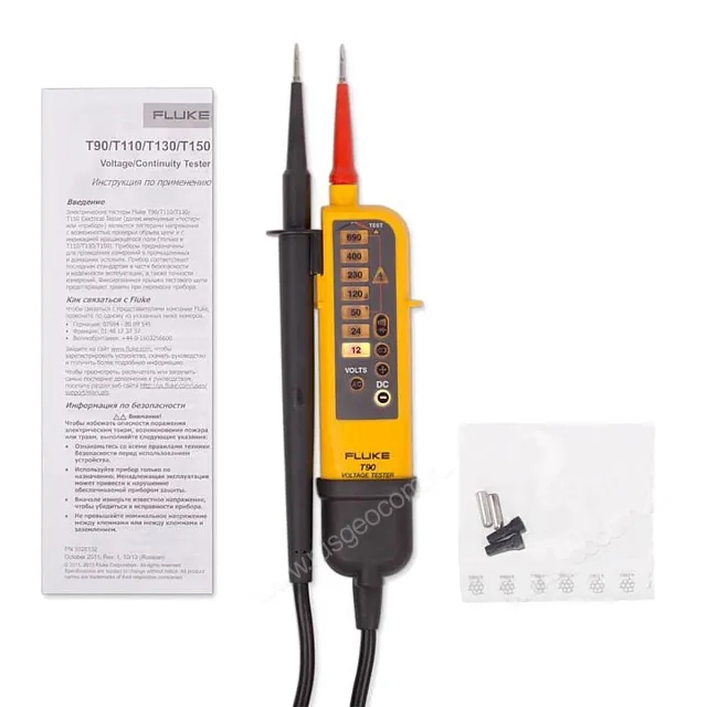 Fluke T90 — двухполюсный индикатор напряжения, благодаря специальной конструкции позволяющий измерять напряжение даже в самых труднодоступных местах. В случае обнаружения опасного напряжения тестер подает предупредительный звуковой сигнал.