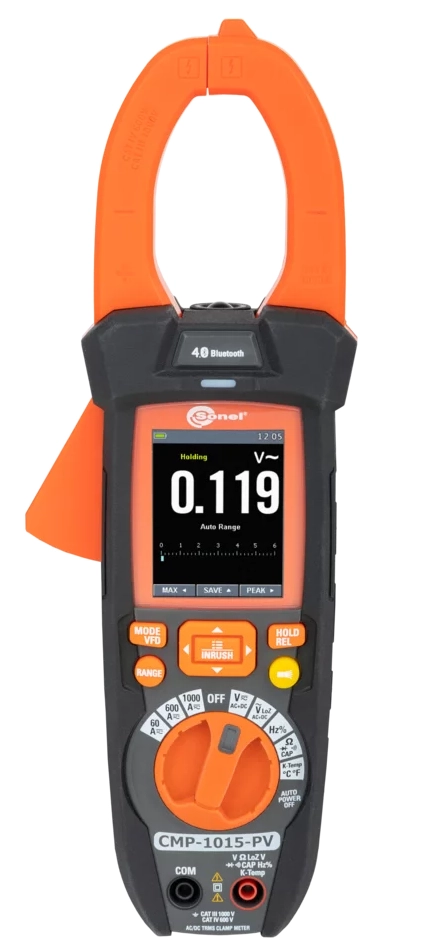 CMP-1015-PV – многофункциональные токоизмерительные клещи, предназначенные для измерения постоянного тока и напряжения в фотогальванических установках напряжением до 1500 В, а также позволяют выполнять измерения в цепях преобразователей частоты.