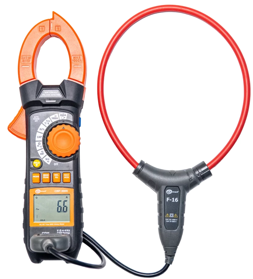 Профессиональные токоизмерительные клещи нового поколения, в сочетании новаторских решений. Гибкие токовые зажимы диаметром 160 мм обеспечивают легкое и безопасное измерение переменного тока до 3000 А. Зажим подключается к клещам с помощью кабеля длиной 170 см, что позволяет работать вдали от токоведущих частей электроустановки. Форма жестких разработана для облегчения тестирования в труднодоступных и тесных местах. В характерном выступе на верхней части губок расположен датчик бесконтактного индикатора напряжения.