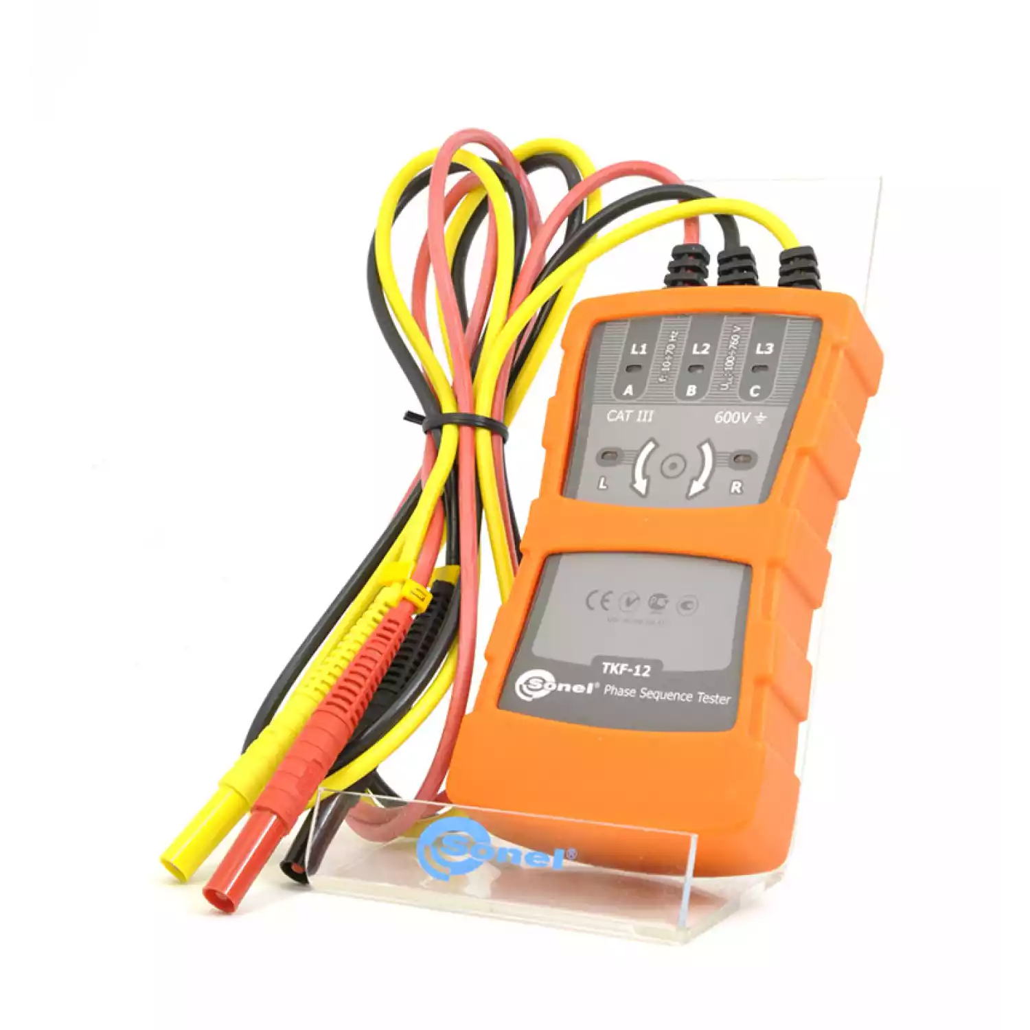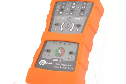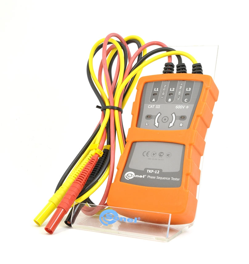 TKF-12 предназначен для определения последовательности чередования фаз и наличия напряжения в трехфазных электроустановках в диапазоне 120…690 В. Все результаты отображаются посредством высококонтрастных светодиодов. TKF-12 выполнен во влаго- и ударозащищенном корпусе, что позволяет применение указателя в различных условиях окружающей среды.