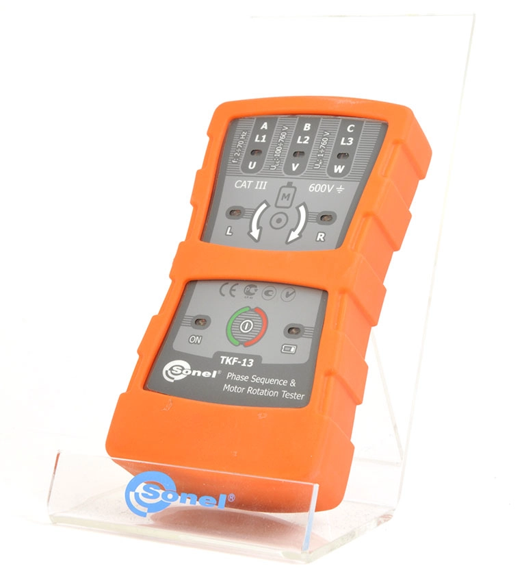 TKF-13 предназначен для определения последовательности чередования фаз и наличия напряжения в трехфазных электроустановках, в диапазоне 100…760 В. Указатель позволяет определить направление вращения электродвигателя как при непосредственном подключении (обесточенное состояние), так и бесконтактно при работе электродвигателя. Все результаты отображаются посредством высококонтрастных светодиодов. TKF-13 выполнен во влаго- и ударозащищенном корпусе, что позволяет применение указателя в различных условиях окружающей среды.