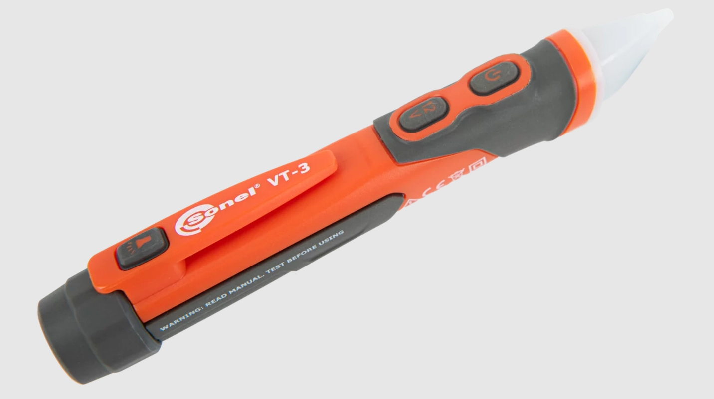 Бесконтактный индикатор напряжения VT-3 предназначен для обнаружения напряжения переменного тока в кабельных линиях и электрооборудовании. Индикатор имеет базовый диапазон обнаружения 100...1000 В, но нижний порог можно понизить до 12 В нажатием специальной кнопки. Цветные светодиоды, расположенные на торце устройства, информируют о режиме работы и уровне определяемого напряжения.