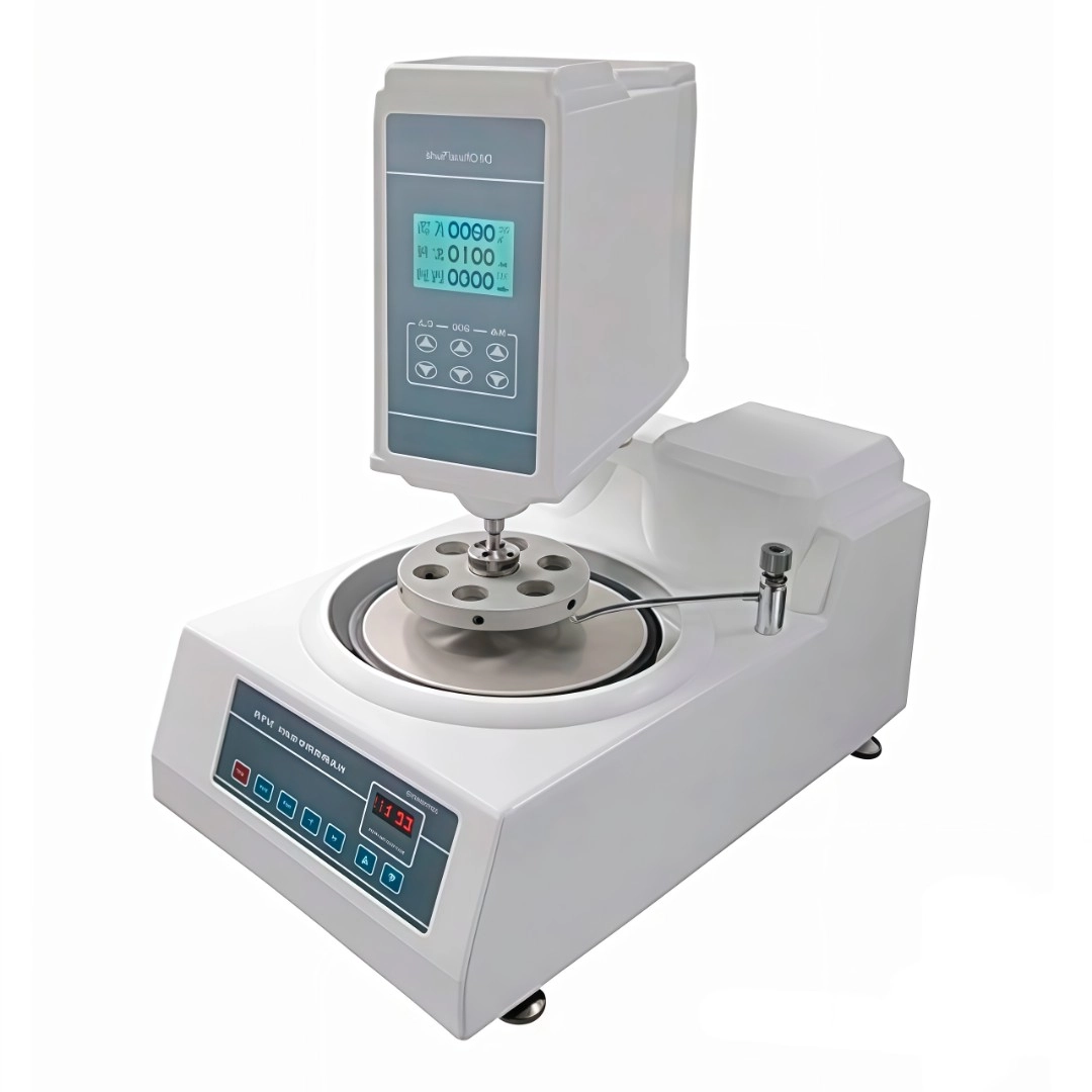 Автоматический шлифовально-полировальный станок MoPao 1000 с цифровым дисплеем отображения скорости вращения. Настройка скорости вращения рабочего диска: две постоянных скорости или бесступенчатое изменение скорости.