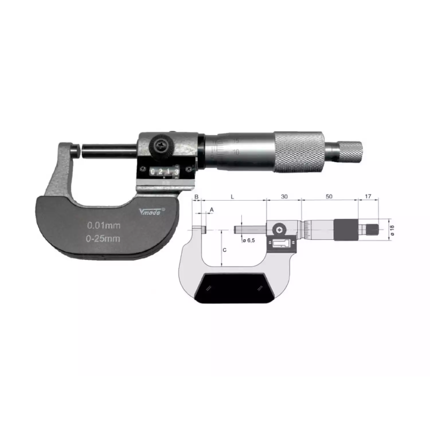 Микрометры Vogel гладкие со счетчиком диапазон измерений от 0-25х0,01 мм до 75-100х0,01 мм, с механическим счетчиком и микрометрическим винтом, предназначены для высокоточного определения линейных размеров. Измерение производится абсолютным или относительным контактным способом. Основным преимуществом инструмента является низкая погрешность, которая колеблется в промежутке значений от 2 до 50 мкм и зависит от класса точности микрометра, а также от измеряемого диапазона. В качестве преобразовательного механизма выступает так называемая микропара – винт и гайка.