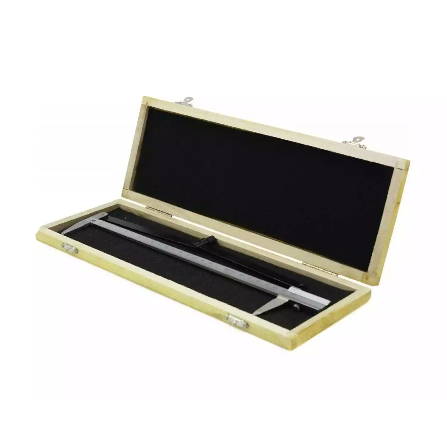 Результаты измерений снимаются по шкале со штанги, которая показывает целые миллиметры и с нониуса, показывающего их доли. Материал изготовления - инструментальная сталь, измерительные губки закалены. Штангенциркуль поставляется в пластиковом или деревянном кейсе.