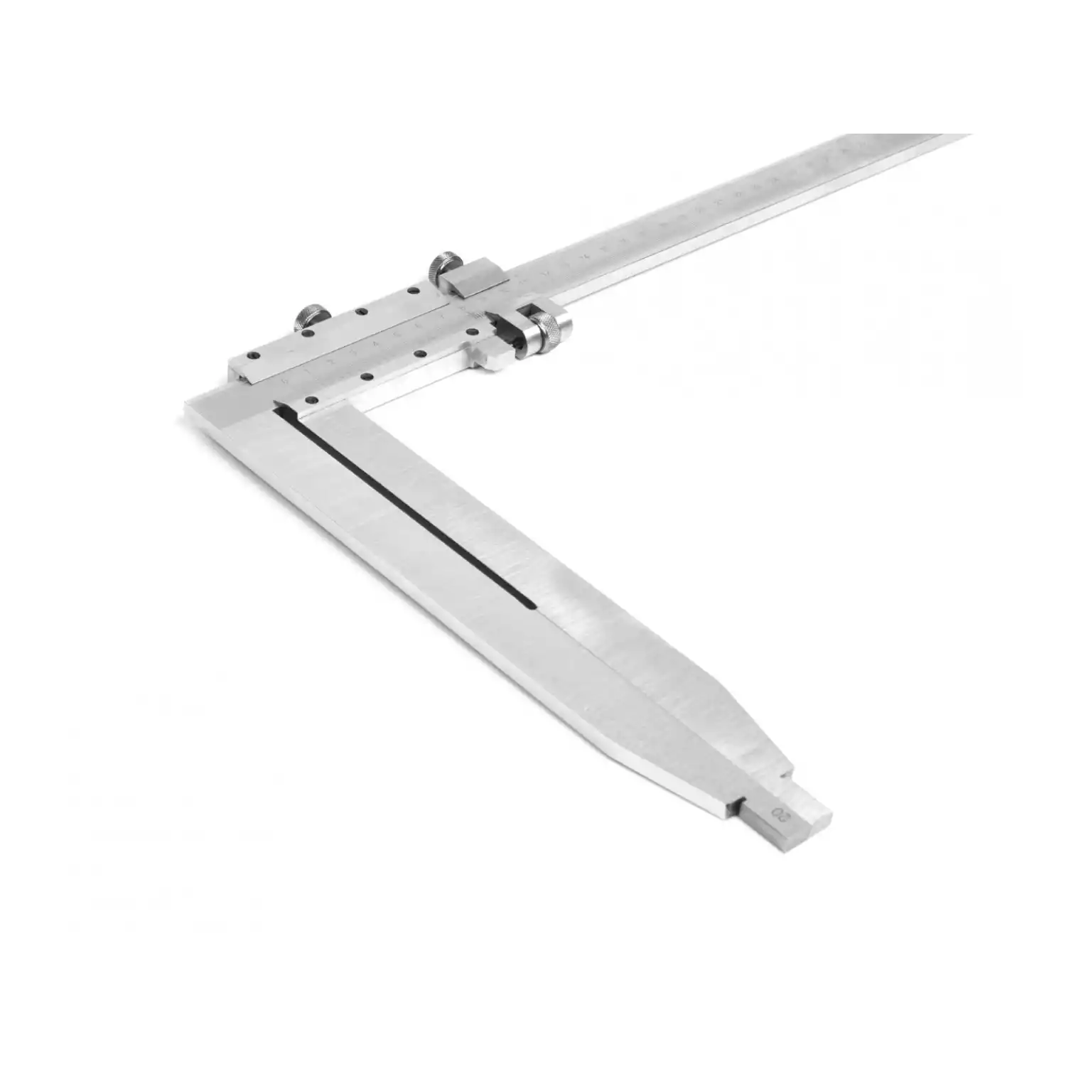 Прибор состоит из вертикальной штанги с основной шкалой и нониуса – вспомогательной шкалы для отсчета долей миллиметра. Снятие показаний происходит путем сложения значений полученных с обоих шкал.