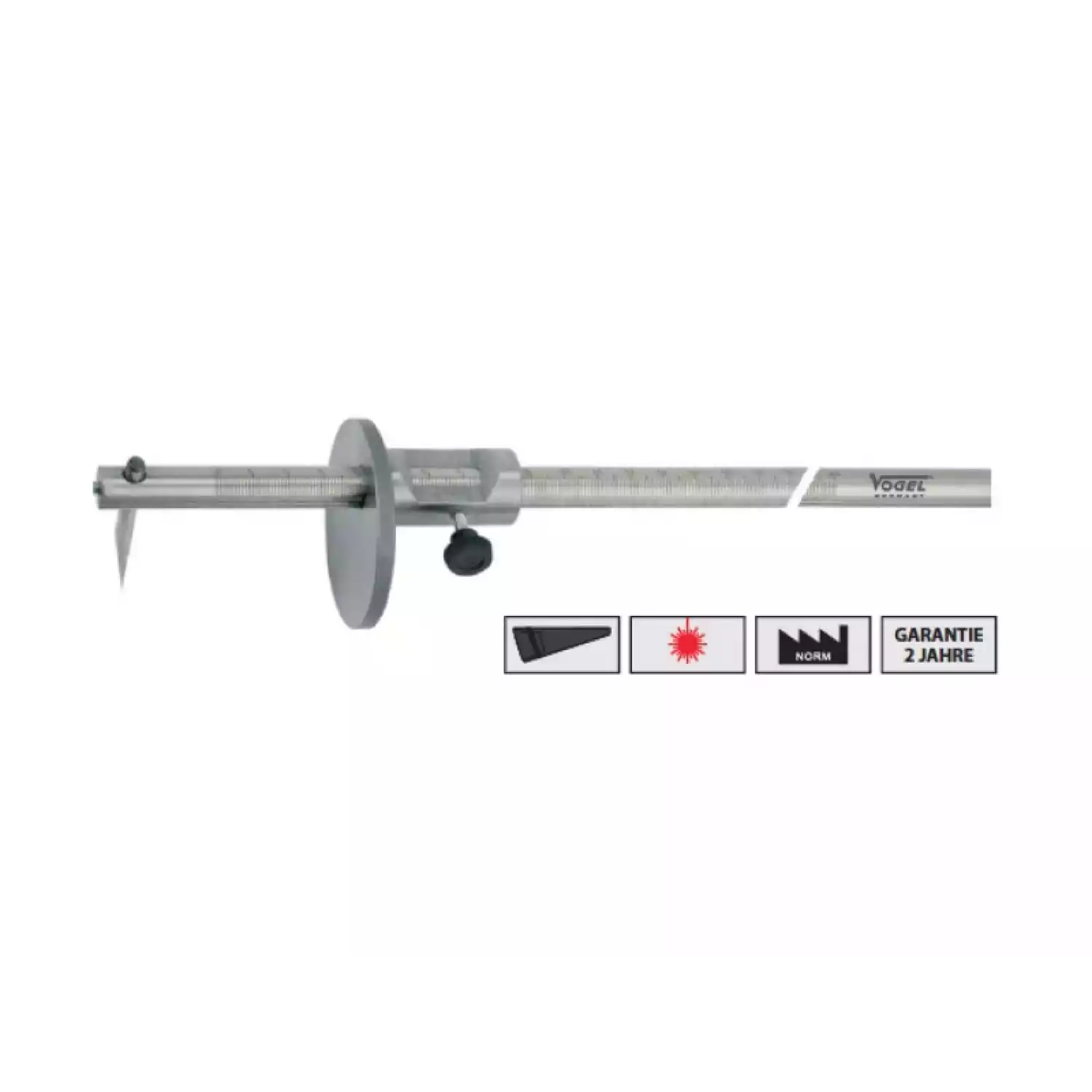 Стрейсмассы Vogel с круглым стержнем, диапазон от 300 мм до 500 мм, нониус 0,1 мм, предназначены для измерения высоты, глубины пазов и отверстий, взаиморасположения поверхностей у детали или изделия, а также для разметки деталей. Различные модификации приборов: индикаторные, нониусные и цифровые. По внешнему виду похожи на штангенциркуль, который вертикально поставлен на свое же основание.