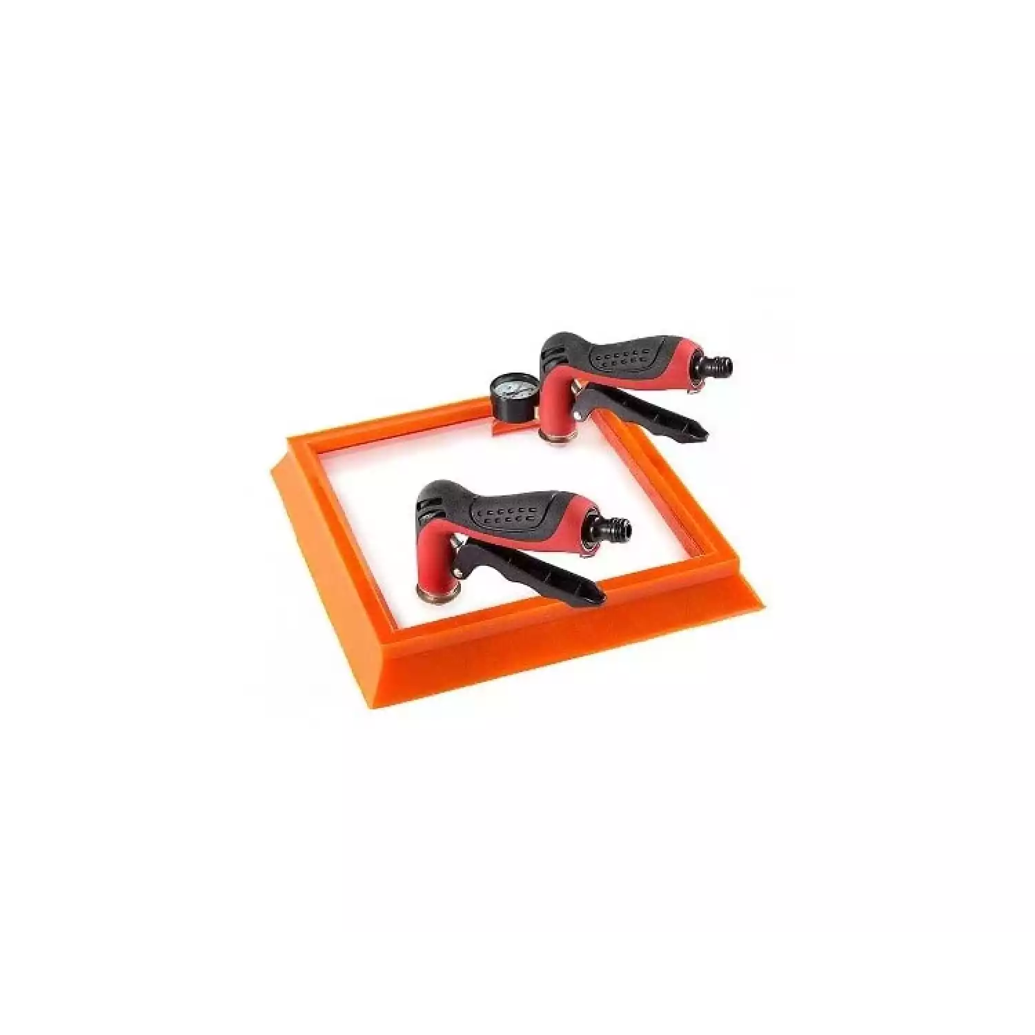 Вакуумная рамка квадратная предназначена для контроля герметичности пузырьковым методом контроля плоских поверхностей. Контроль герметичности пузырьковым методом позволяет выявить сквозные дефекты в сварных соединениях изделий из стали и пластика. Рамка квадратная применяется для контроля таких объектов как резервуары, котлы, трубопроводы, топливные баки, облицовки и прочие объекты с односторонним доступом.