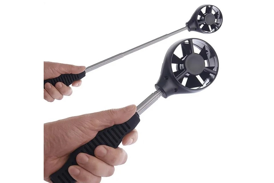 Анемометры с зондом-крыльчаткой применяются для измерения скорости направленного воздушного потока в трубопроводах и коробах вентиляционных устройств, для вычисления расхода вентиляционного воздуха в вентиляционных отверстиях, воздуховодах жилых и производственных зданий. Принцип действия приборов при измерении скорости воздушного потока модификаций В7-А2, В7-А2+, В7-А9 и В7-А10 основан на тахометрическом принципе, при котором частота вращения первичного преобразователя (крыльчатки) пропорциональна скорости воздушного потока, в который он помещён. Скорость вращения крыльчатки преобразуется в электрический сигнал индуктивным преобразователем.