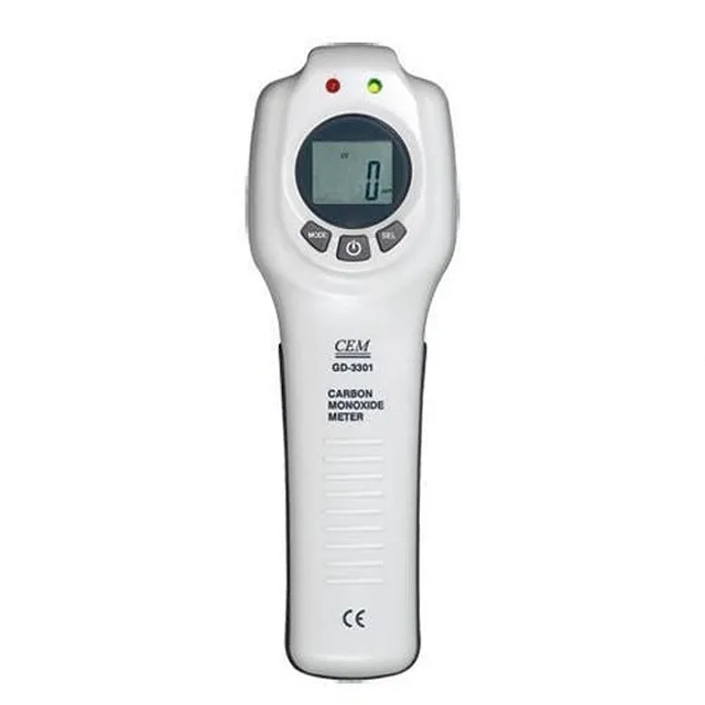 Портативный газоанализатор GD-3301 предназначен для определения наличия в воздухе окиси углерода (СО) и измерения его концентрации. Прибор измеряет наличие угарного газа и отображает данные на жидкокристаллическом дисплее в сопровождении звукового сигнала. Звуковой сигнал детектора GD-3301 работает наподобие зуммера счетчика Гейгера – если концентрация СО превышает 200 ppm, сигнал звучит непрерывно, а если концентрация лежит в пределах от 35 до 200 ppm сигнал звучит прерывисто, причем частота сигнала зависит от концентрации СО.