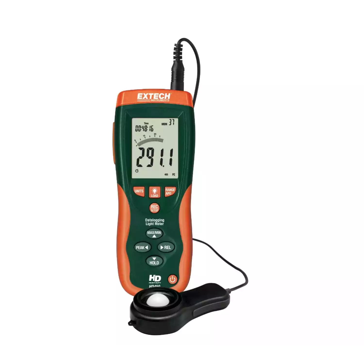 Измеритель освещенности для работы в тяжелых условиях Extech HD400 имеет широкий диапазон измерений до 4000 фс или 40000 люкс. Измерения корректируются косинусом и цветом. В конструкции использован прецизионный кремниевый фотодиод и фильтр спектральной чувствительности. Ударопрочный корпус для работы в тяжелых условиях.