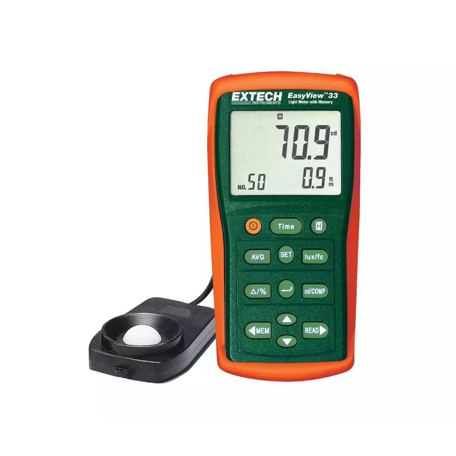 Измеритель освещенности с функцией памяти Extech EA33 имеет большой ЖК дисплей с функцией освещенности и дополнительными характеристиками. Широкий диапазон измерений до 99990 св. (999900 люкс) с разрешением в 0,001 св. и 0,01 люкс.