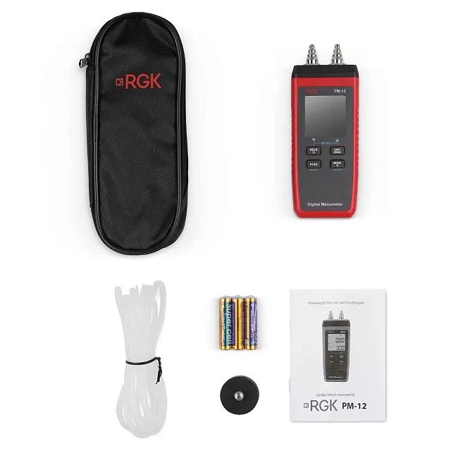 Цифровой манометр RGK PM-12 - двухканальный прибор для измерения манометрического и дифференциального давления, который часто используется при настройке и пусконаладке систем вентиляции, отопления и любых других, где есть движение воздушных масс.