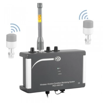 Беспроводная система мониторинга PCE-VMS 504 измеряет вибрацию в диапазоне до 30 g и в частотном диапазоне от 5 до 10 кГц. Система использует внешние сенсоры, передача сигнала от которых выполняется в беспроводном режиме. Всего система позволяет подключить и объединить в единую систему до 60 датчиков.