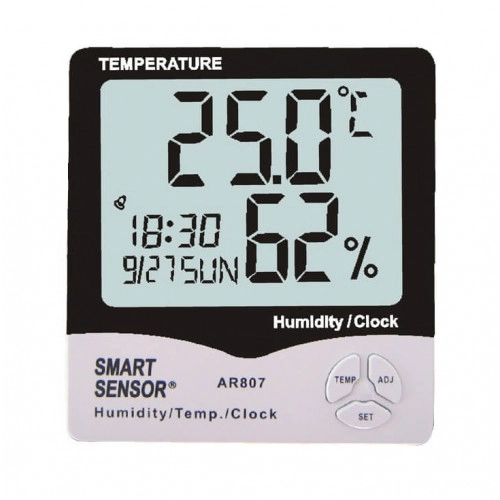 Цифровой влагомер-термометр AR807 является портативной настольной метеостанцией с возможностью измерения температуры воздуха и относительной влажности воздуха. Метеостанция AR807 имеет встроенный календарь и часы. Кроме всего прочего, влагомер оснащен будильником, который своевременно разбудит вас с утра или напомнит о важном мероприятии. Интересный дизайн прибора украсит как рабочее место, так и домашнюю обстановку. Термометр-влагомер является прекрасным многофункциональным устройством, которое может применяться в бытовых и промышленных условиях.