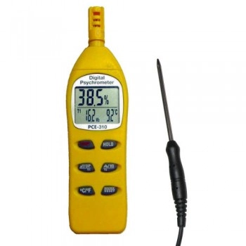 Гигрометр PCE-310 это многофункциональный прибор за минимальную цену. С данным психрометром вы можете измерять климатические параметры помещений, а также температуру поверхности или продуктов с помощью внешнего сенсора. Прибор также позволяет определять точку росы. Используя этот прибор, вы сможете своевременно обнаружить высокий уровень влажности и предотвратить формирование плесени или других нежелательных явлений на складах и производствах. Прибор может применяться в строительстве для определения точки формирования конденсата. Благодаря компактным размерам прибор легко использовать в самых труднодоступных местах. Вы можете самостоятельно калибровать прибор с помощью специального набора либо же проводить калибровку в специальных лабораториях.