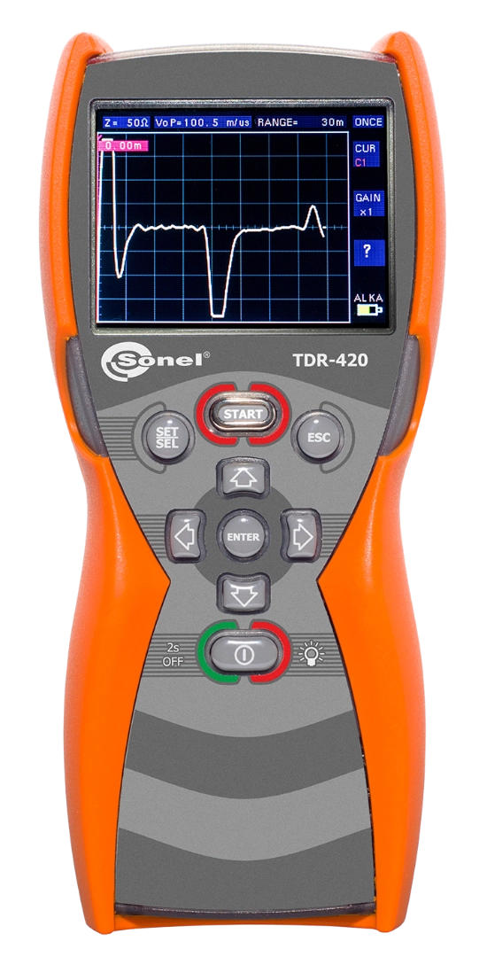 Рефлектометр TDR-420 является удобным цифровым импульсным локализатором. Предназначен для идентификации и локализации повреждений в силовых, телекоммуникационных и кабелях связи. TDR-420 позволяет определить длину кабеля и расстояние до повреждения в диапазоне от 0 до 6000 м в любом типе кабеля с металлическими жилами или в токопроводящих коммуникациях.