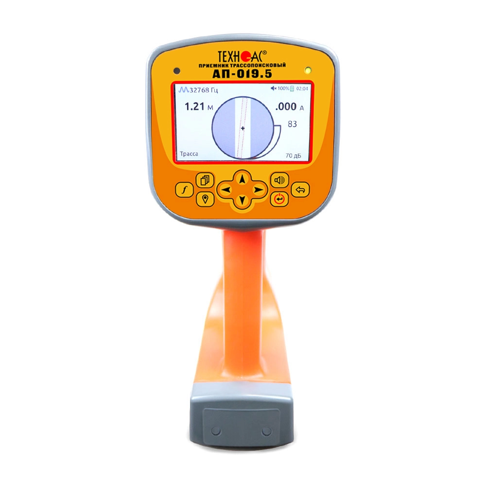 В составе комплекта приемник в виде моноблока с большим ЖК дисплеем, на который выводится изображение трассы и в автоматическом режиме происходит расчет глубины залегания коммуникации до 10 м, а также величины тока в линии. Встроенный GPS\ГЛОНАСС модуль для определения и записи координат нахождения коммуникации.