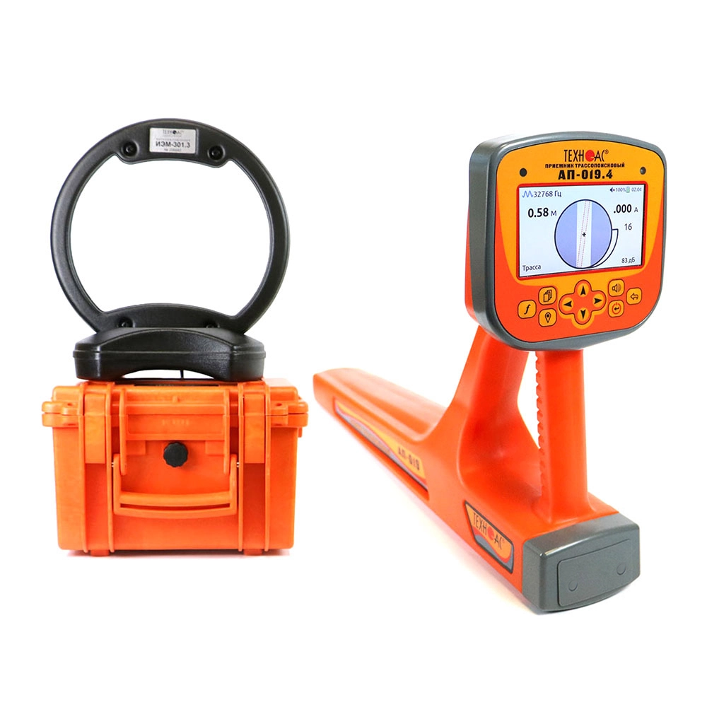 В составе комплекта приемник в виде моноблока с цветным ЖК дисплеем, на который выводится изображение трассы и в автоматическом режиме происходит расчет глубины залегания коммуникации до 30 м, а также величины тока в линии, а также генератор повышенной мощности до 180 Вт и дальностью работы до 10 км.