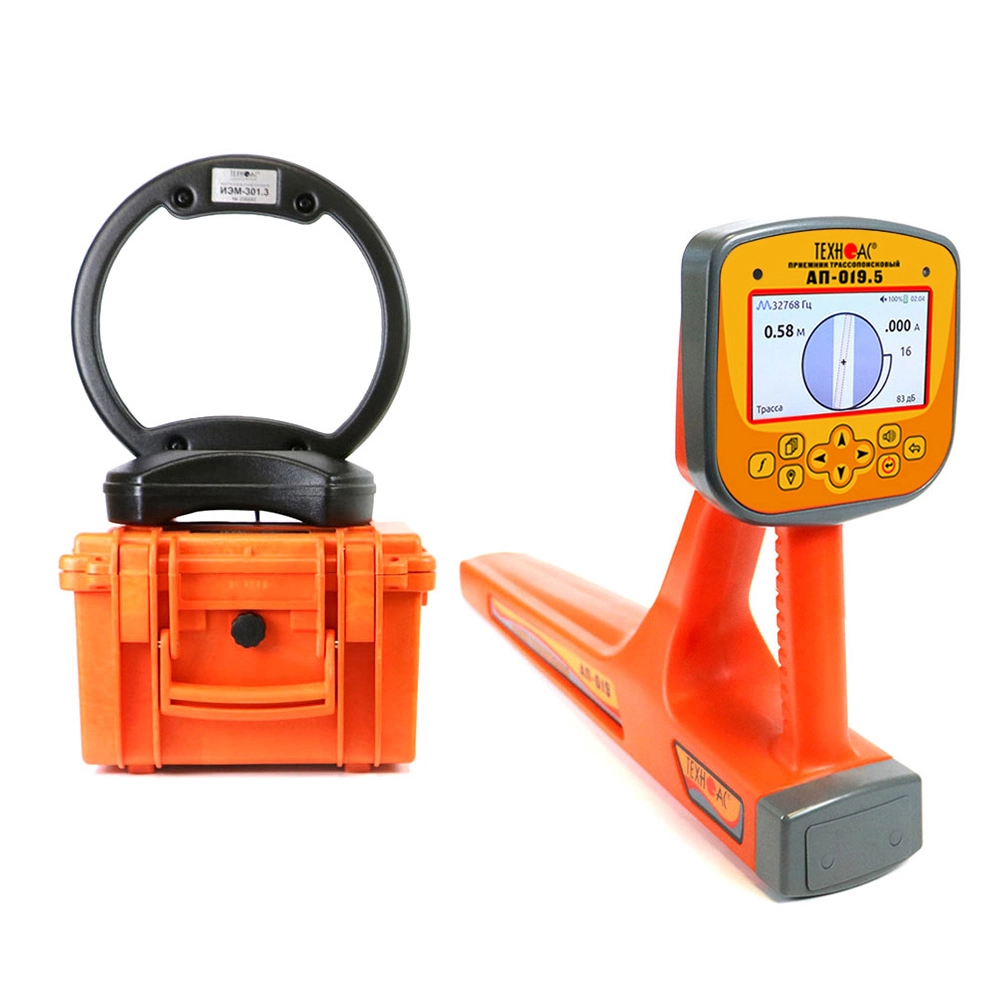 В составе комплекта приемник в виде моноблока с цветным ЖК дисплеем, на который выводится изображение трассы и в автоматическом режиме происходит расчет глубины залегания коммуникации до 30 м, а также величины тока в линии, а также генератор повышенной мощности до 180 Вт и дальностью работы до 10 км.