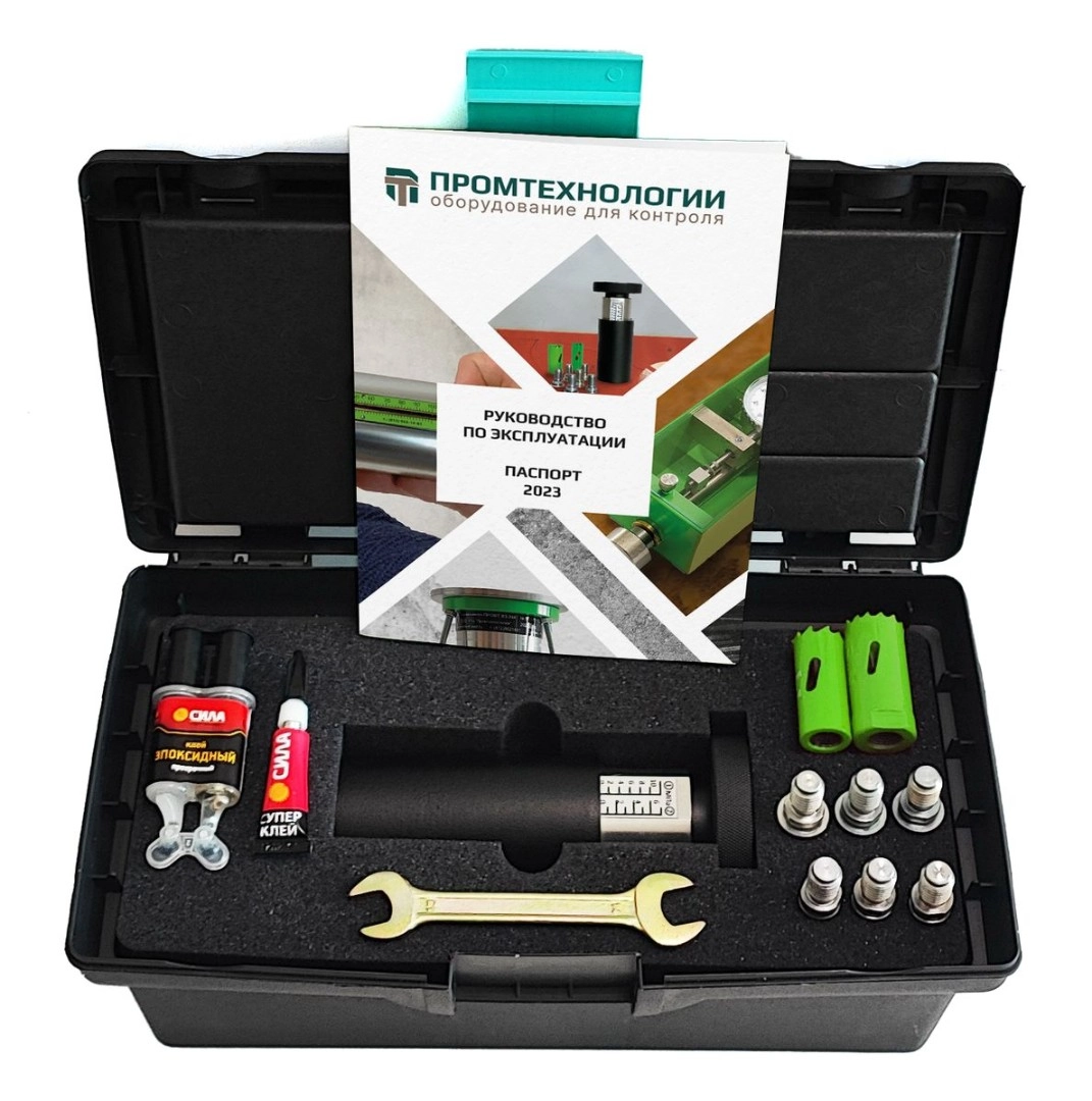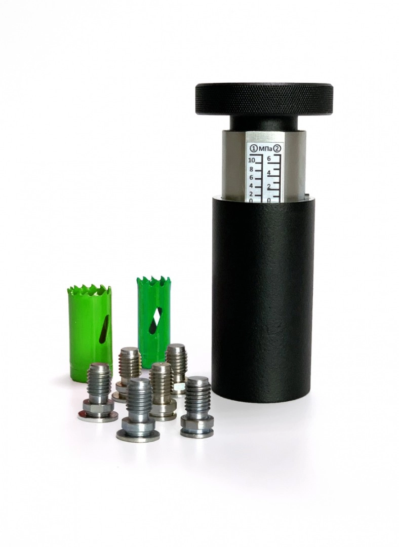 Это надежный и простой механический прибор выполненный из металла. Использование быстрополимеризирующихся клеев двух типов идущих в комплекте позволяют проводить контроль без значительных временных затрат. Адгезиметр АМЦ-1 не требует специальных навыков для работы с ним и позволяет оперативно контролировать качество покрытий в полевых и лабораторных (цеховых) условиях. В стандартном комплекте поставки идут по 3 грибка каждого 15,1 и 19,5 мм, 2 вида балеринок для обрезания покрытия вокруг грибков, 2 типа клея и ключ для выкручивая грибков после проведения контроля. В дополнительных комплектациях добавляются соответствующие грибки, шкалы и балеринки необходимого размера, с грибками для контроля в диапазоне 0-2 МПа поставляется специальная проставка.