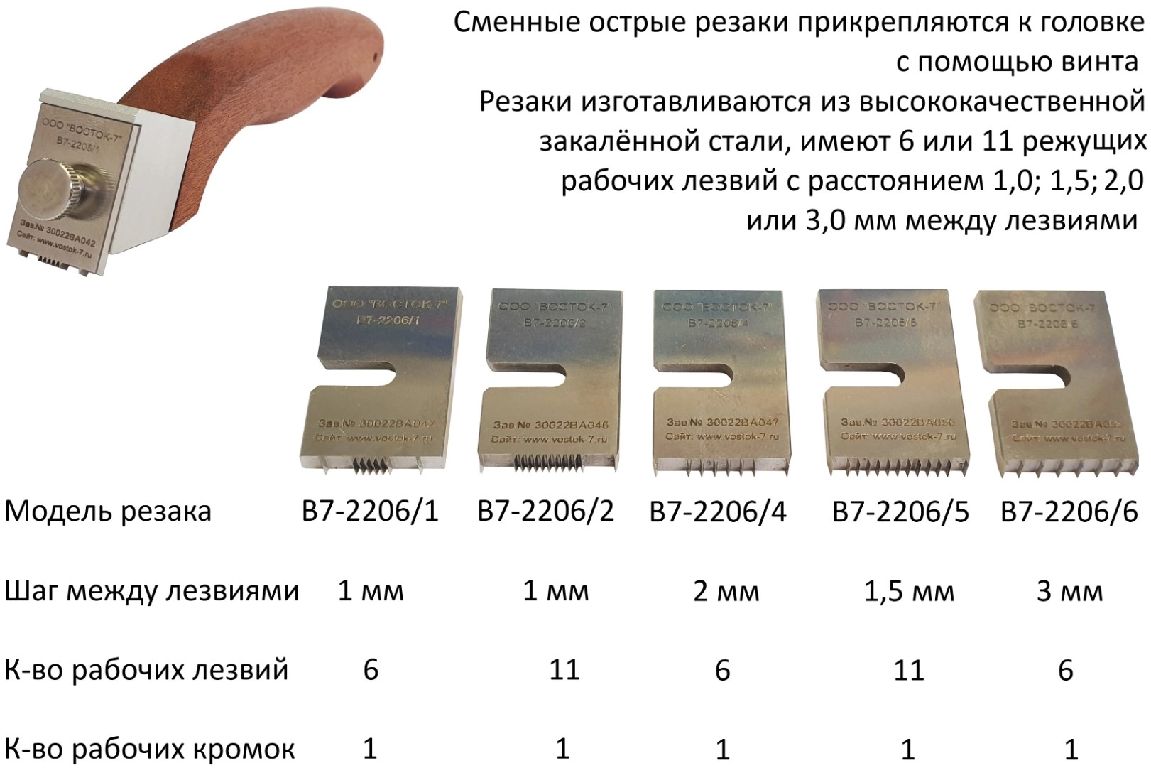 Полный комплект, включая резак 6 лезвий, шаг между лезвиями 1 мм