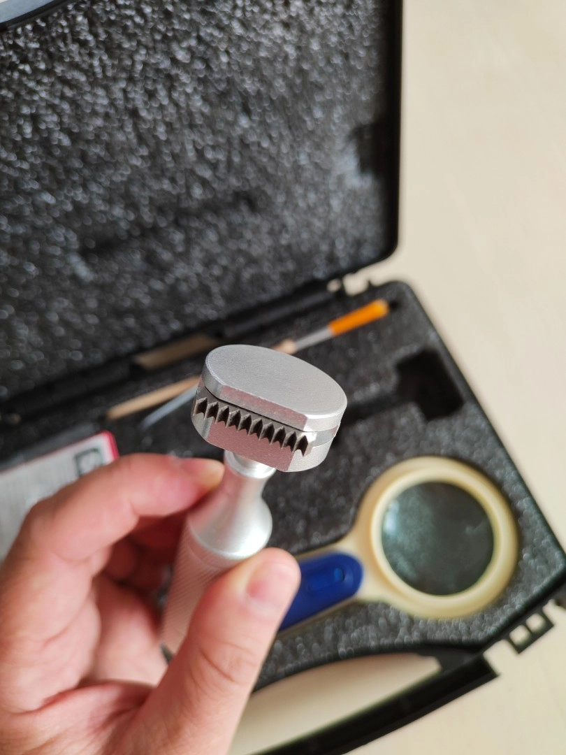 Адгезиметр АВМ КН имеет долговечные резаки с 11 режущими кромками и алюминиевую ручку-держатель.