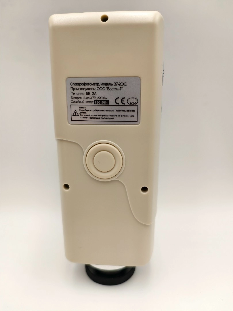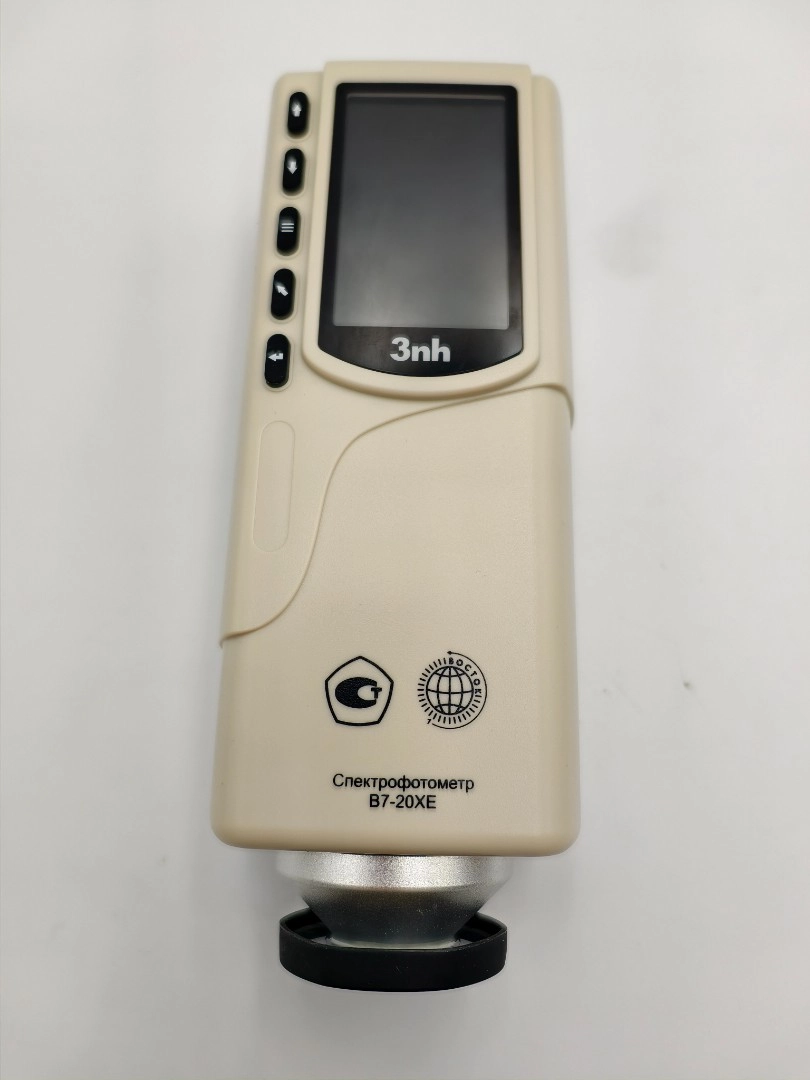 Модель В7-20XE – прецизионный колориметр с направленной геометрией 45°/0° и апертурой 20 мм, позволяющей проводить измерения с учётом влияния особенностей поверхности. Прибор имеет классический для колориметров вертикальный дизайн, что делает его особенно удобным при цветовом контроле влажных и сыпучих продуктов. Позиционирование при помощи перекрестия на пятке измерительной апертуры.