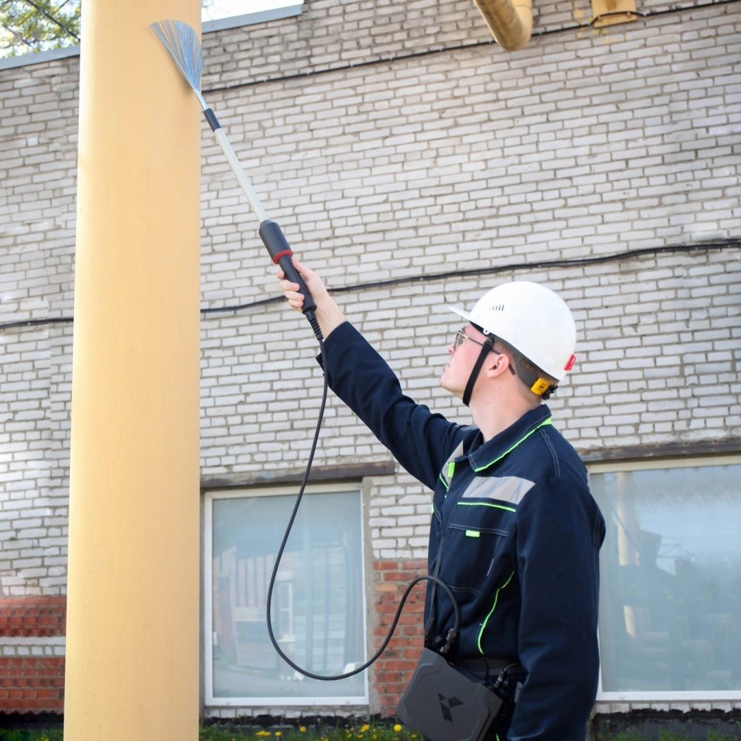 Выявление сквозных пор, трещин, проколов, царапин, недопустимых утонений и других нарушений сплошности защитных диэлектрических покрытий (лакокрасочных, эпоксидных, битумных и т. д.) на металлических и бетонных конструкциях.