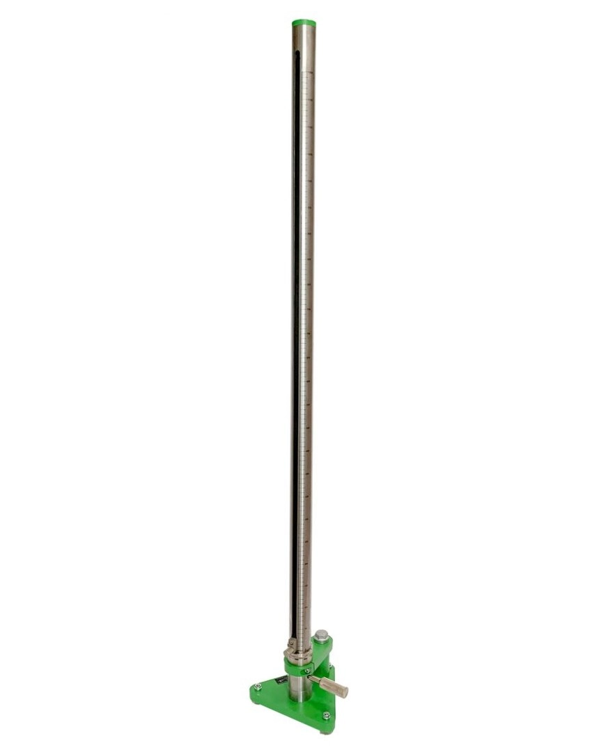 Измеритель изготовлен из металла, имеет в основании зажимное устройство для установки тестируемого образца и сменную наковальню для использования с различными грузами. На основание закреплена труба с прорезью и шкалой. В трубе свободно перемещается ударное устройство (груз) требуемой массой с бойком заданного радиуса.