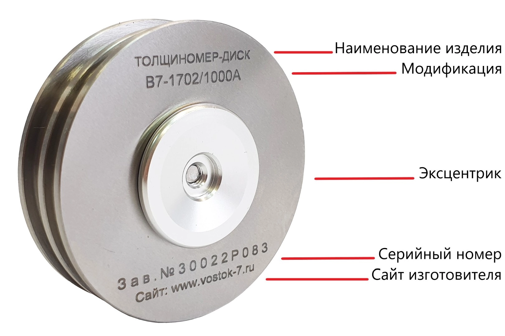На диске лазером маркируется изготовитель, наименование и модификация, серийный номер. Ближайшие аналоги – Elcometer 3230. Толщиномер-диск доступен в 7 различных моделях с разными диапазонами измерений. Измерительная шкала нанесена по всей периферии диска с одной стороны.