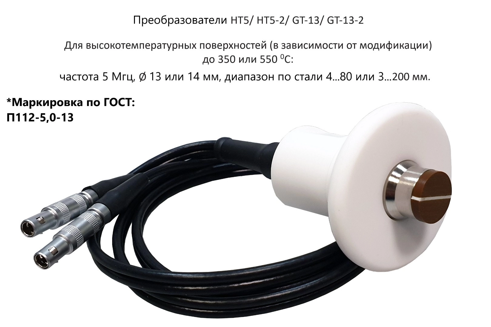 Датчик ультразвуковой GT-13-2 (5 МГц; 4-80 мм, до 550°) для толщиномеров В7-217, В7-227, В7-237