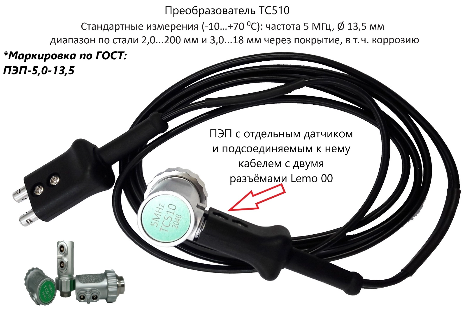 Датчик ультразвуковой TC510 (5 МГц; 2,0-200 мм) для толщиномеров В7-227, В7-237