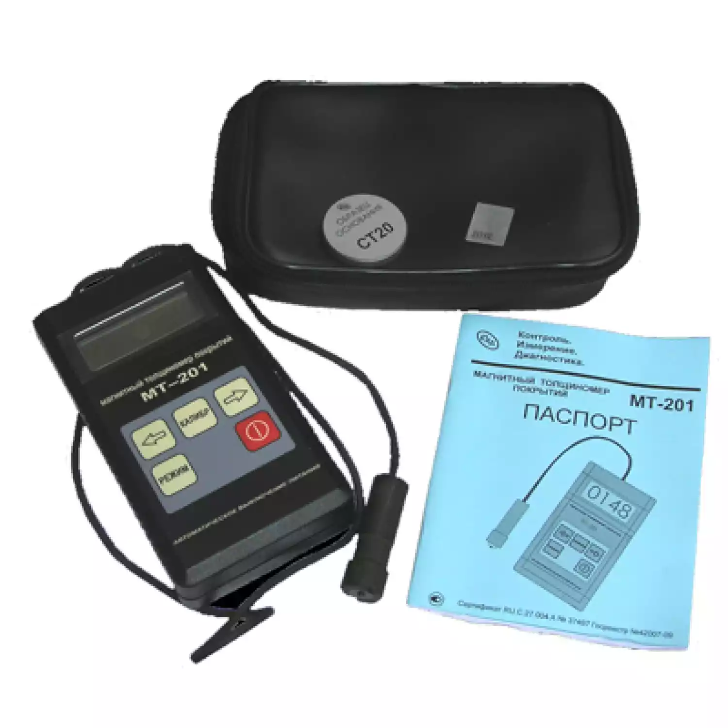 Вихретоковый толщиномер покрытий ВТ-201 предназначен для измерения толщины неметаллических покрытий (краска, эмаль, пластик и т.д.) на немагнитном основании (алюминий, медь, титан) в соответствии с ГОСТ Р 51694, ИСО 2808.