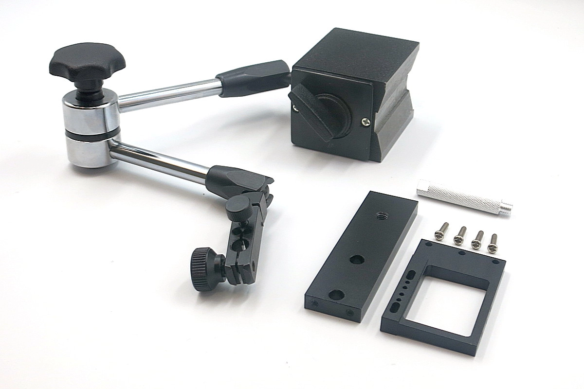 Назначение: Штатив измерительный ТА1420 (с магнитным основанием) можно примагничивать к любому железному основанию и с помощью закреплённого в нём прибора измерять шероховатость поверхности в различных положениях, в т.ч. вертикальных при помощи сгибающихся колен штатива. Измерительный штатив позволяет провести более точную регулировку положения иглы датчика и получить более стабильные результаты измерений.