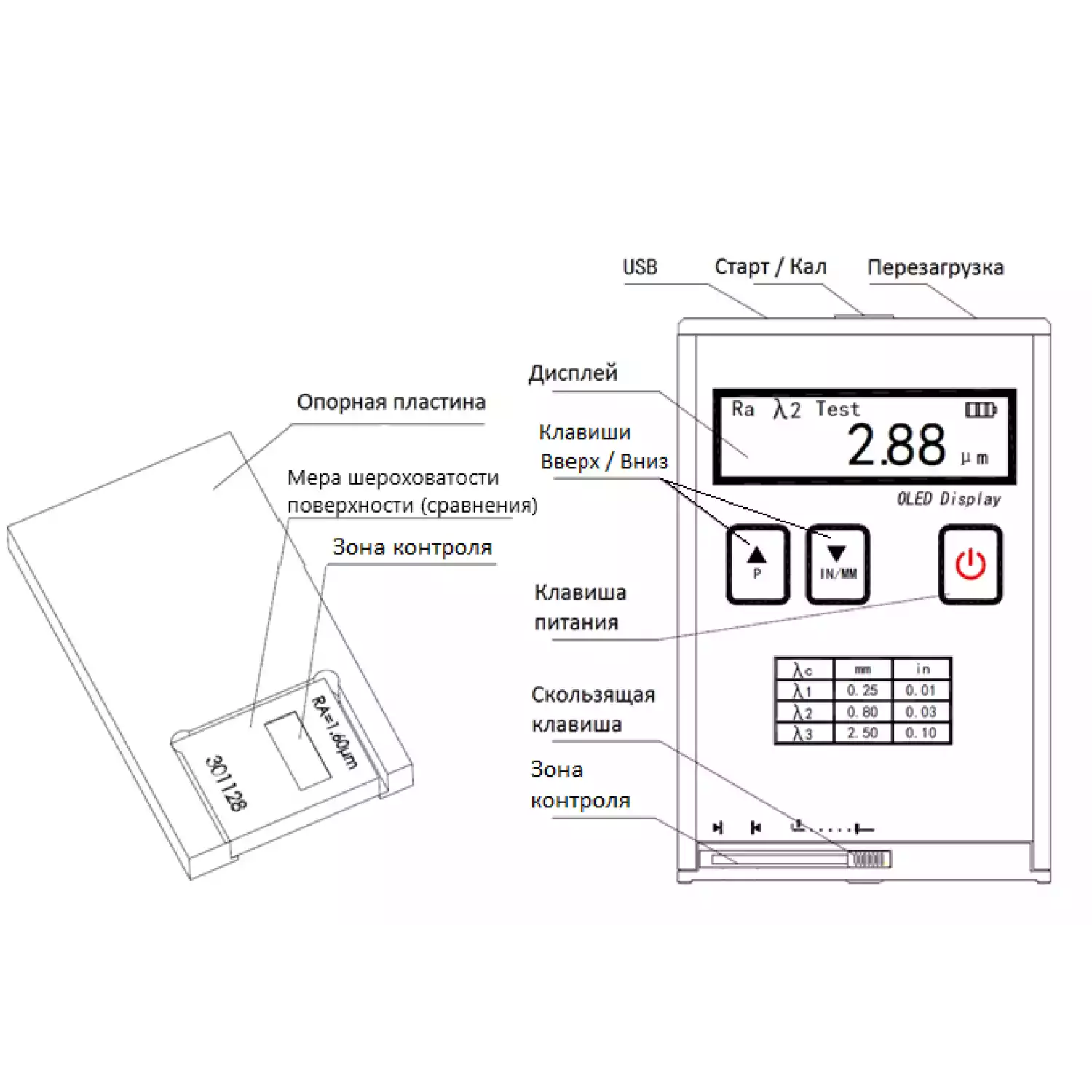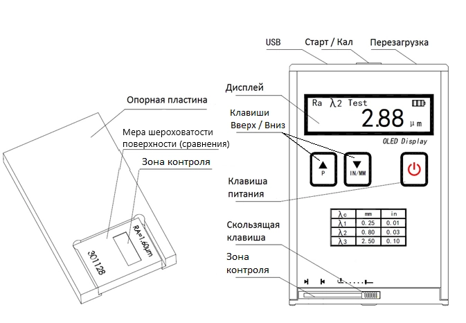 ОПИСАНИЕ. Принцип действия приборов основан на ощупывании неровностей измеряемой поверхности алмазной иглой измерительного щупа и преобразовании возникающих перемещений и колебаний щупа в изменения электрического напряжения, пропорциональные этим перемещениям, которые преобразуются микропроцессором приборов.