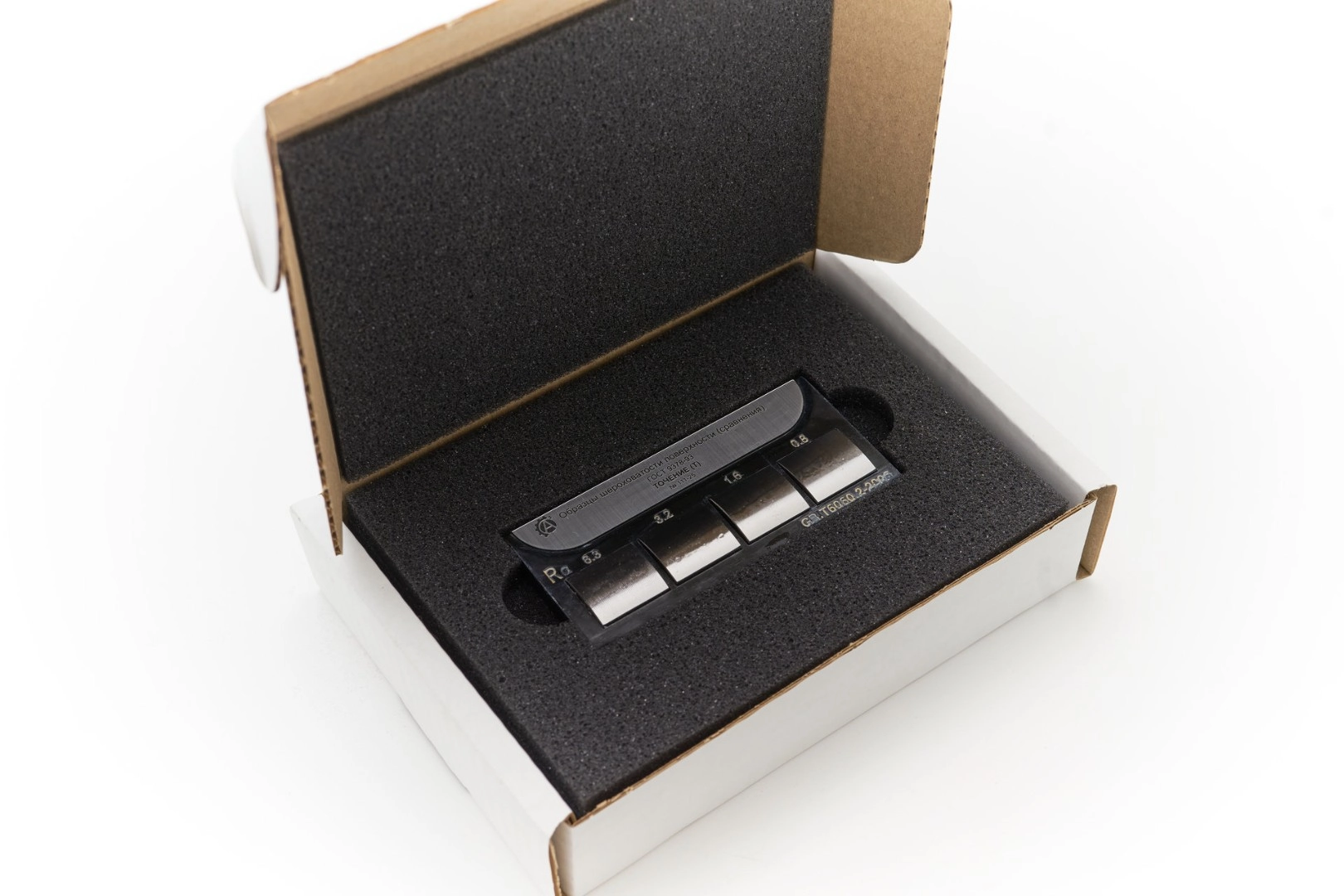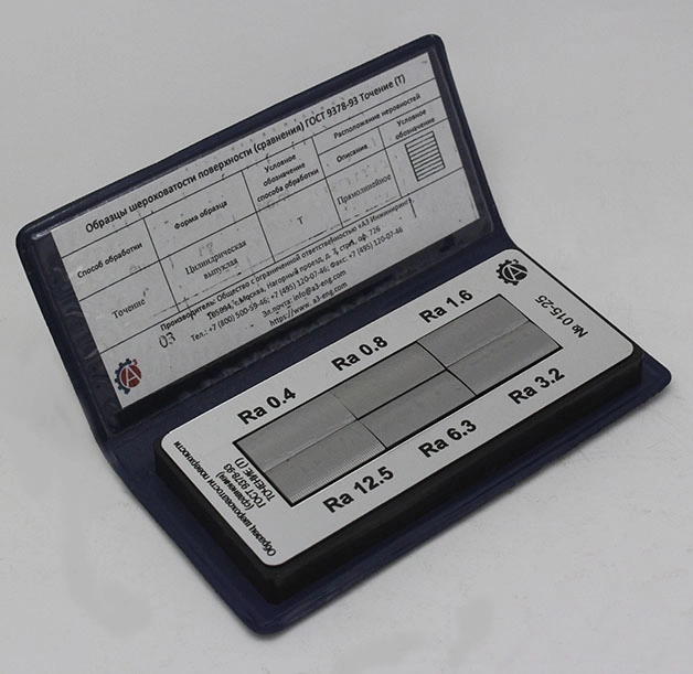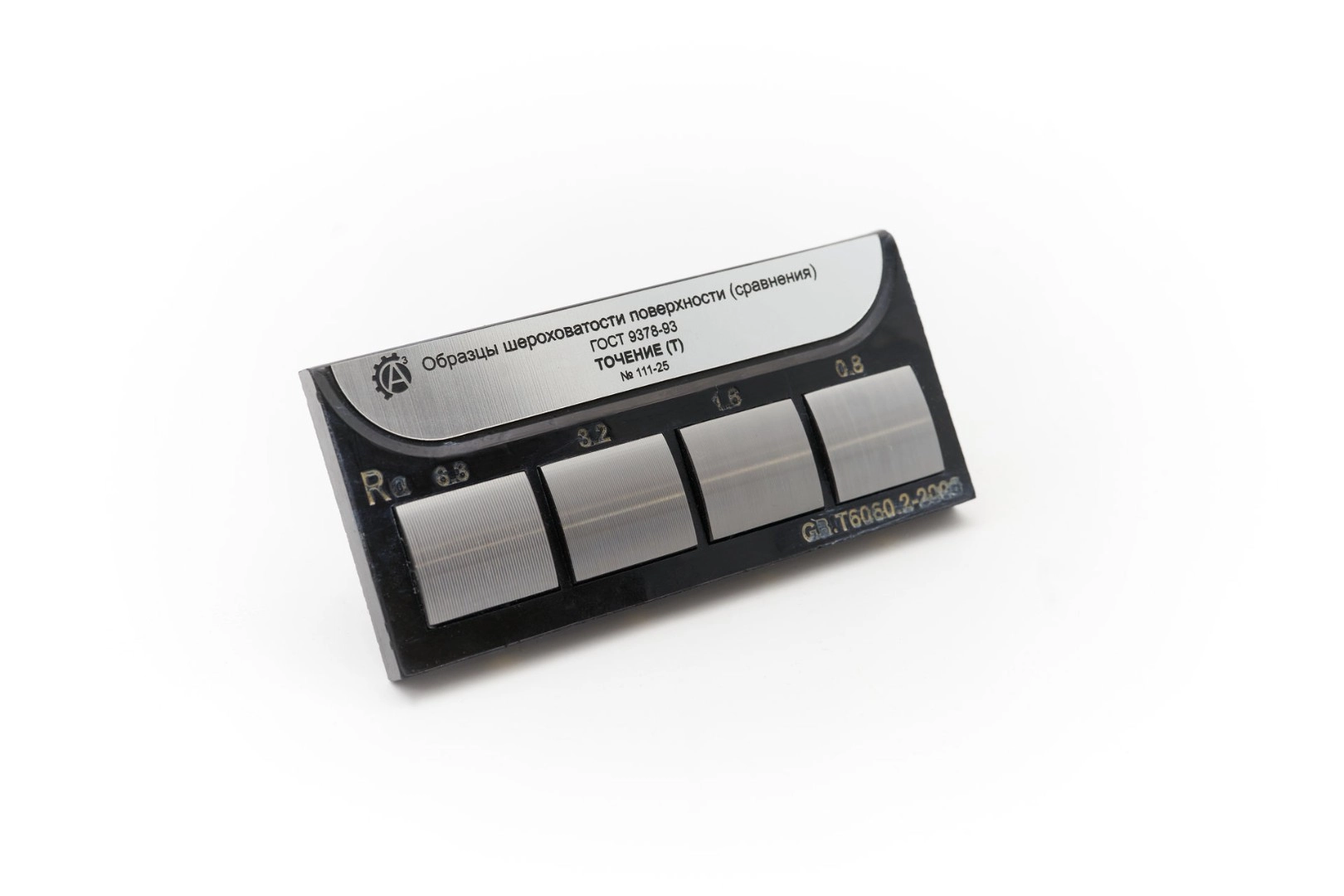 Образцы (меры) шероховатости сравнения предназначены для определения шероховатости объекта контроля путем сравнения с образцами с известными значениями шероховатости. В зависимости от вида обработки поверхности объекта контроля и объема требований к выполнению различных технологических операций, требуются наборы образцов с различными видами обработки и номинальными значениями. Наша компания производит различные образцы в соответствии с ГОСТ 9378-93.
