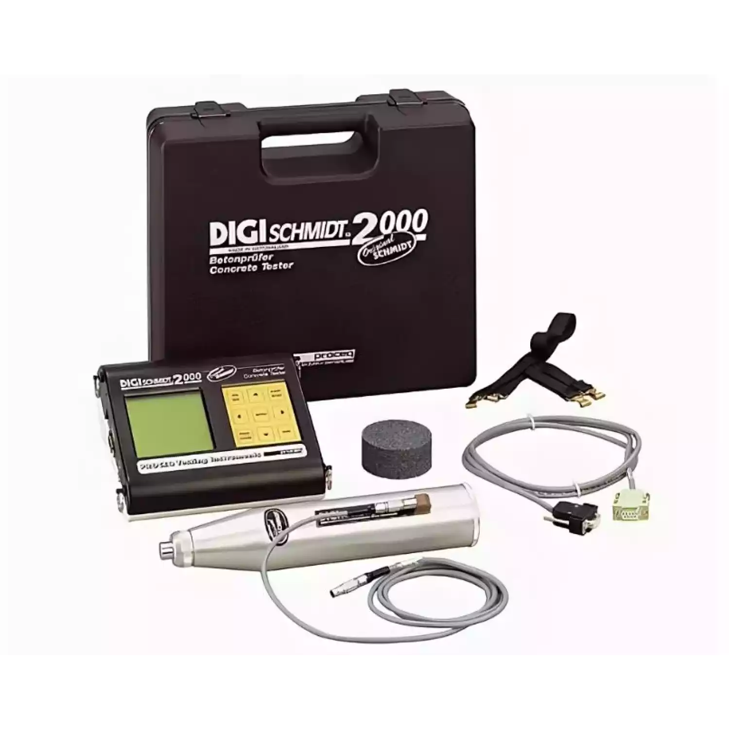 340 00 202 Молоток Шмидта DIGI-SCHMIDT 2000 типа ND для испытаний бетона. Комплект поставки Ударный тестер, электронный блок, интерфейс RS 232C или переходник для USB, кабель передачи данных, программа ProVista, шлифовальный камень, ремешок для переноски, кейс для переноски и руководство по эксплуатации