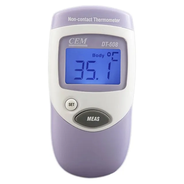 Пирометр CEM DT-608 — устройство для бесконтактного измерения температуры человеческого тела в диапазоне 35 до 42 ºC и поверхностей в диапазоне 0 до 60 ºC с высокой точностью 0,1 ºС. Для наглядности и оперативности все показания отображаются на контрастном дисплее с подсветкой. Данный прибор будет очень полезен на крупных предприятиях, транспортных узлах, в торговых центрах, а также в других объектах, где необходимо оперативно обнаружить людей с повышением температуры.