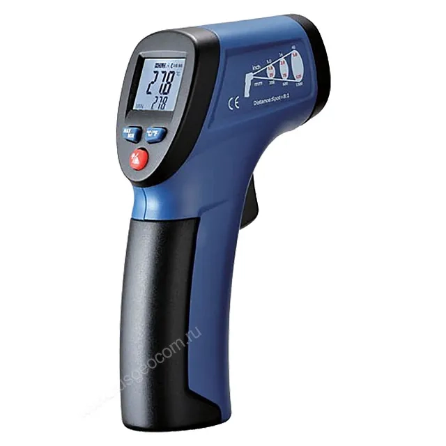 Пирометр CEM DT 812 — качественный современный прибор для бесконтактного измерения температуры поверхности объекта, даже опасно горячего или труднодоступного. Устройство работает по принципу регистрации инфракрасного излучения исследуемой поверхности. Возможности встроенного ИК-датчика и электронно-оптической схемы преобразования позволяют практически безошибочно - с точностью до 2 % при шаге 0,1ºC - измерять температуру в диапазоне от -30ºC до +500ºC. Пирометр DT 812 работает с фиксированным коэффициентом ИК-эмиссии, равным 0,95. Индикация полученных значений происходит на четырехразрядном LCD-дисплее, оснащённый встроенной светодиодной подсветкой для работы при недостаточном освещении.