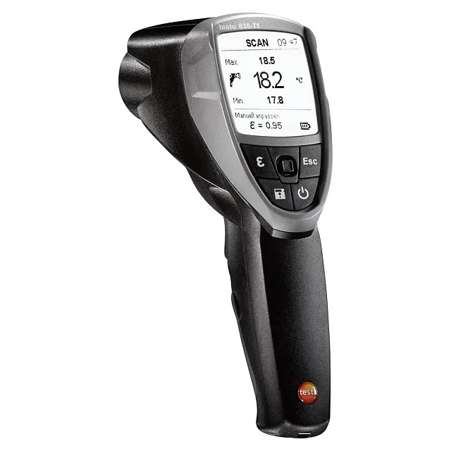 Инфракрасный пирометр Testo 835-T1 позволяет с точностью ±(0,5% + 0,5°C) и шагом 0,1°C измерить температуру от −50 до 600°С на расстоянии в несколько метров. Благодаря широкому диапазону рабочих температур - от -20 до 50 °C — пирометр Testo 835 T1 применяют во многих отраслях от ЖКХ до атомной энергетики. Среди других достоинств пирометра: