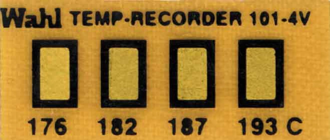 Индикаторы температуры Wahl Special Mini Four-Position, номиналы от +37 до +260 °C. Необратимые термоиндикаторы. Для агрессивных сред. Четырехпозиционные, прямоугольные. Мини размер 10*21 мм. В одной упаковке 10 шт. Специализированный индикатор температуры для контроля перегрева непосредственно на поверхности интегральных схем печатных плат. Разработаны для того, чтобы противостоять воздействию высокой температуры, вакуума и коррозионных газов при использовании в сложных условиях полупроводниковой промышленности.