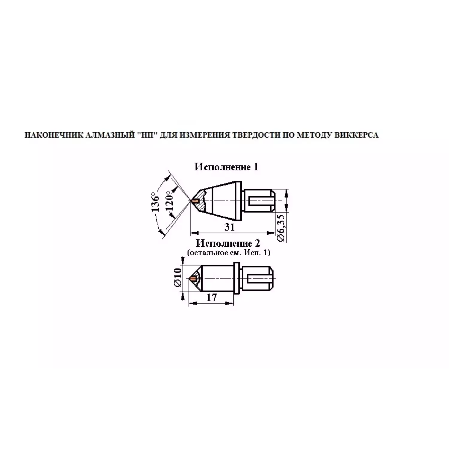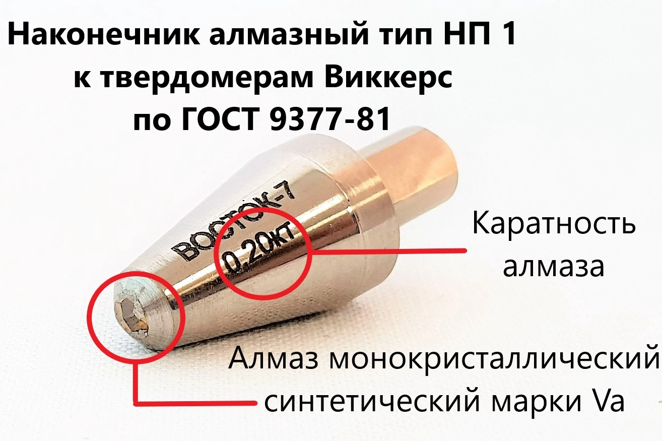 Наконечник алмазный НП 1 с рабочей частью в виде четырёхгранной пирамиды для измерения твёрдости по методу Виккерса.